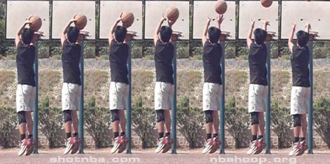 。。另外还有一个原因就是,我最近因为冰敷的关系,膝盖不那么疼了,终于可以恢复的练习跳投了,所以,如我们以前说过的,我们的这些投篮要点,是适用于投跳和跳投以及罚球这些投篮动作的,不是只针对其中的一种的。当然,跳投的一些技巧和罚球的一些技巧,也会在全部要点讲完以后,再展开讲解。所以,由于可以恢复性的练习跳投,我也就可以用跳投的资料图片来作为文章的辅助材料了,也就是下面将会出现的一些图片,左手移开的图片,不必再使用以前的投跳图片了。