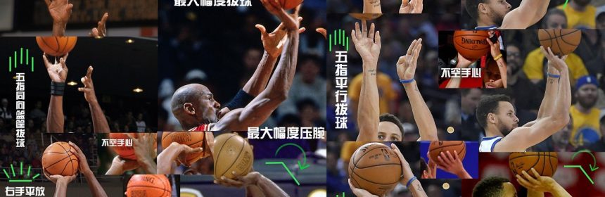 这其中,包含了软手拨球和硬手拨球的细节特征和用法,以及直线发力的示例图,还有肩上发力的特征和位置以及侧身投篮的幅度解析。